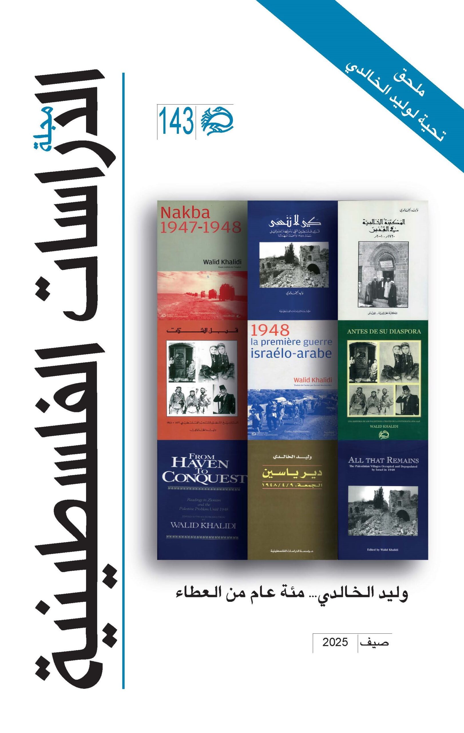 وكملحق للعدد، منفصل عنه، لكنه في الوقت نفسه جزء منه، تكرّم مجلة الدراسات الفلسطينية، المؤرخ الفلسطيني الفذّ، وأحد بناة مؤسسة الدراسات الفلسطينية ونهجها الفكري والثقافي، الأستاذ وليد الخالدي الذي يبلغ في هذه السنة مئة عام أمضاها في عرض المسألة الفلسطينية على أسس علمية، وساهم وأسس لتاريخ النكبة، مواجهاً في ما كتب السردية الإسرائيلية بسردية فلسطينية واضحة وعميقة وموضوعية ومقنعة. وفي هذا الملحق التكريمي لوليد الخالدي ومنجزاته يكتب حشد من الأصدقاء والمثقفين له وعنه.