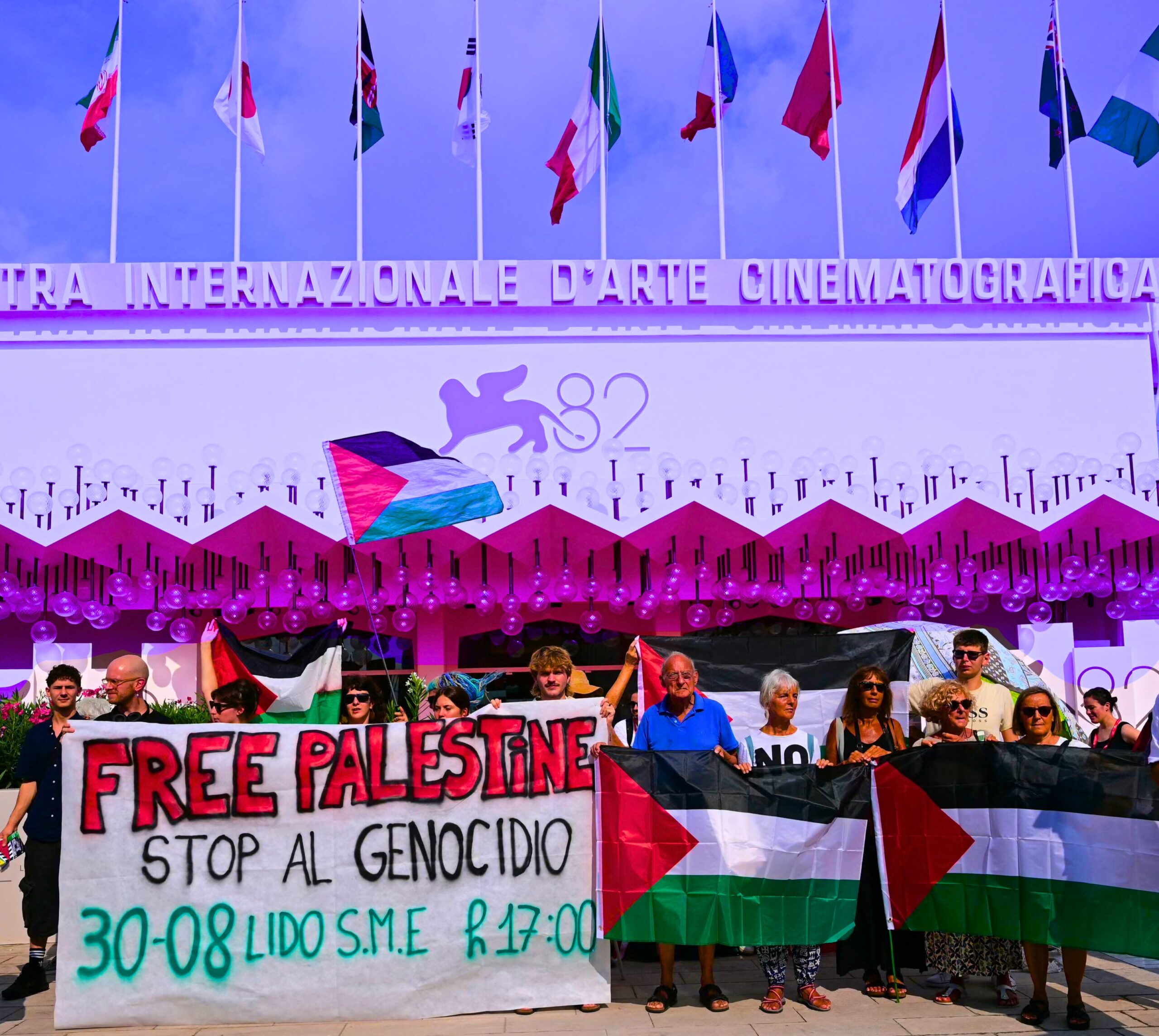 وقد وقع أكثر من 1500 شخص، بينهم شخصيات من عالم السينما، على رسالة مفتوحة صادرة عن مجموعة "فينيسيا من أجل فلسطين" (Venice4Palestine – V4P) تدعو المهرجان إلى "التحلي بمزيد من الشجاعة والوضوح في إدانة الإبادة الجماعية المستمرة في غزة والتطهير العرقي في جميع أنحاء فلسطين الذي تنفذه الحكومة والجيش الإسرائيلي".