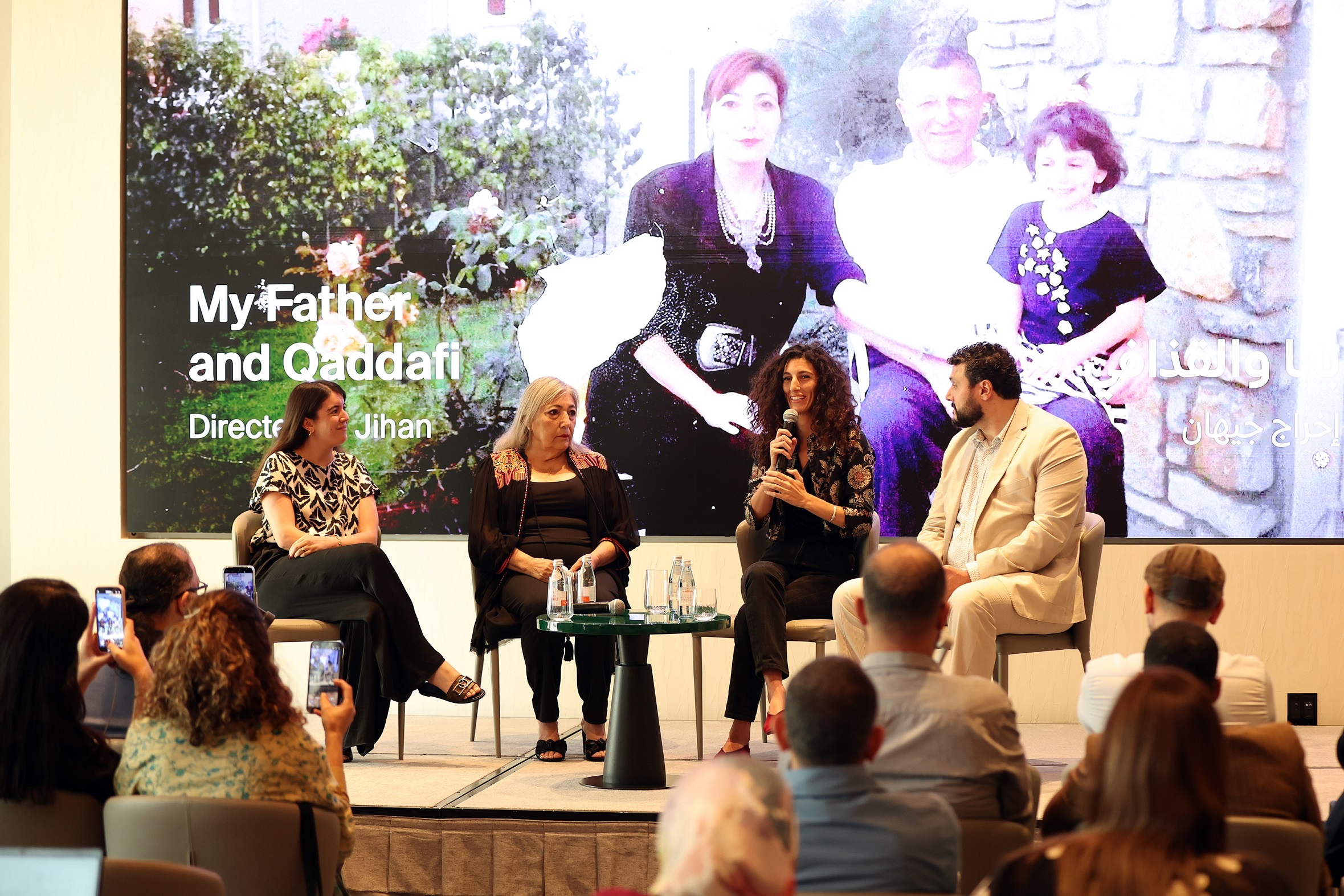 في فيلم "بابا والقذافي" حضرت المخرجة جيهان، أفراد عائلتها الذين ظهروا معها في العمل، والدتها بهاء، وشقيقها رشيد، وابنة شقيقها دانيا. وتحدثت المخرجة جيهان خلال الإيجاز الصحفي الخاص بالفيلم عن رحلة الفيلم في استكشاف ملابسات اختفاء والدها، منصور رشيد الكيخيا، الدبلوماسي الليبي وزعيم المعارضة السلمية الذي اختفى في عام 1993، قبل العثور على جثمانه بعد 19 عامًا من فقدانه.