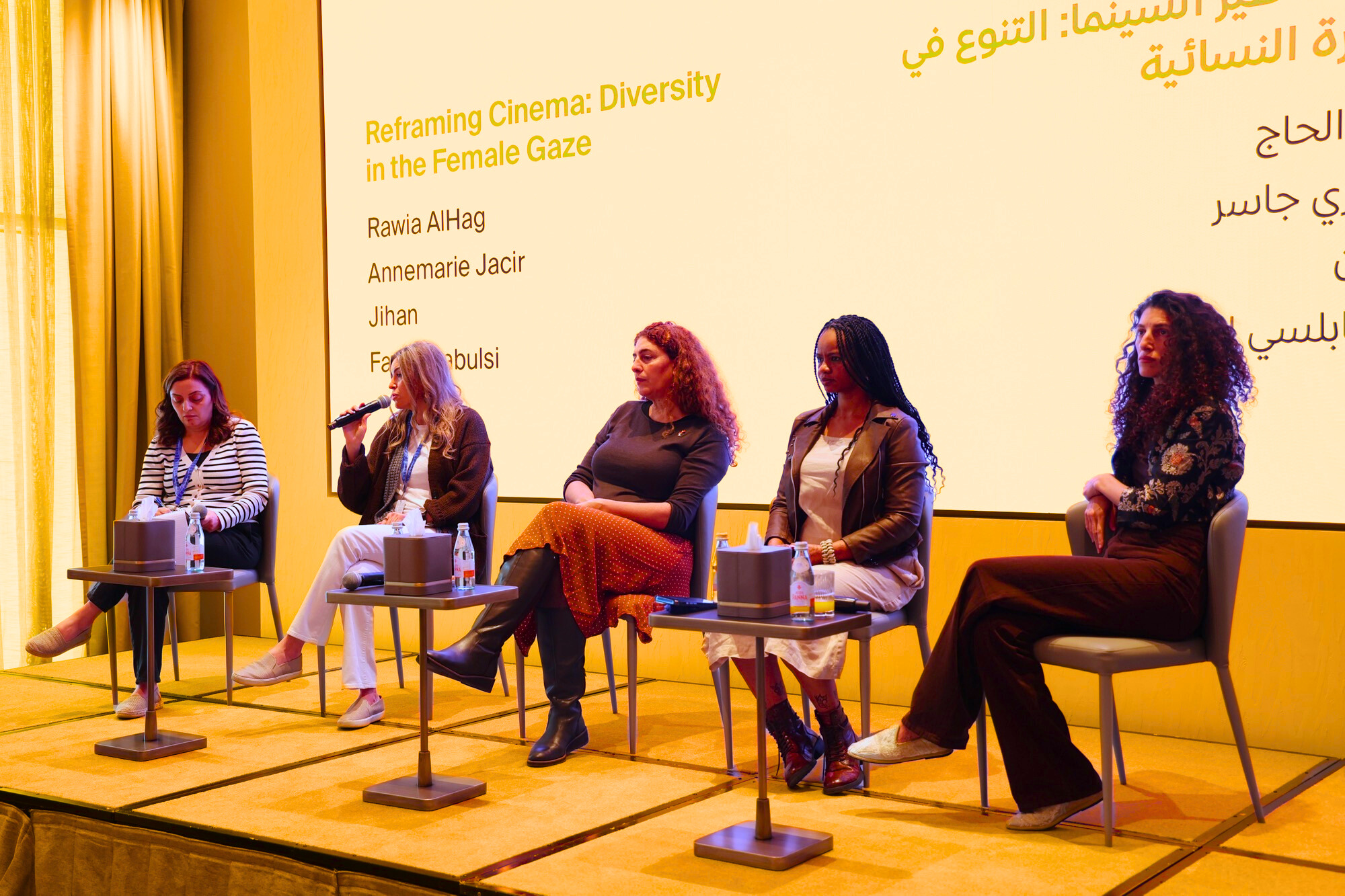 ضمّت الجلسة مجموعة من صانعات الأفلام النساء هنّ: المخرجة البريطانية-الفلسطينية فرح النابلسي (فيلم الهدية)، المخرجة السودانية راوية الحاج (فيلم الخرطوم)، المخرجة الفلسطينية آن ماري جاسر (فلسطين 36)، والمخرجة الليبية-السورية جيهان (فيلم بابا والقذافي).