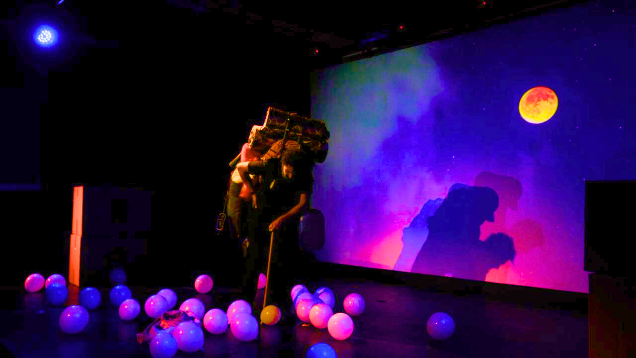 ننتقل خلال ساعة عرض المسرحية بين ماضي أصيل الطفل، ومستقبله الشيخ، بين الإقبال على الحياة والإصرار عليها، والبقاء في الماضي وعدم القدرة على التجاوز. فانحناء الظهر والاتكاء على العصا، وضعف النظر بلبس النظارة، يُظهر لنا أثر الحرب الذي لم يزول، برغم تعاقب السنوات.