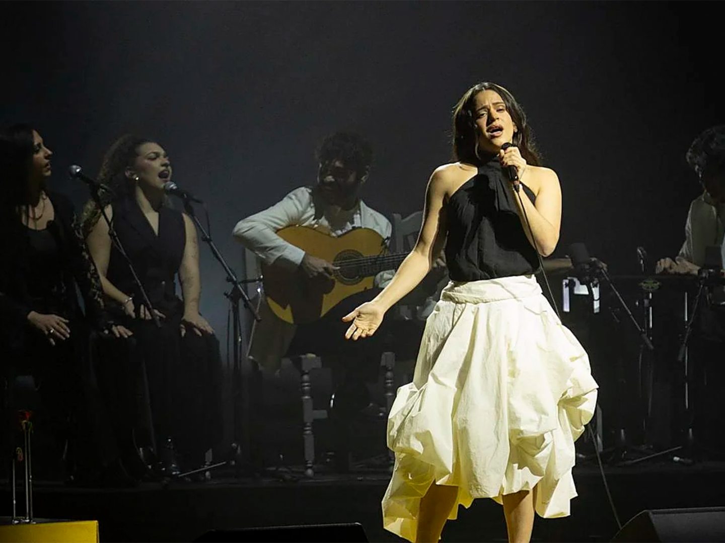 جاءت اللحظة الأبرز في الأمسية في ختام الحفل، مع صعود المغنية وكاتبة الأغاني روزاليا إلى المسرح من دون إعلان مسبق، وسط تفاعل جماهيري لافت، لتقدم أغنيتها الأخيرة "جوهرة" (Perla). ولم يكن اسم روزاليا مدرجاً في البرنامج الرسمي. وشكّلت مشاركتها رسالة واضحة في سياق حملة تهدف إلى تسليط الضوء على الوضع الإنساني في فلسطين، لا سيما في ظل الانتقادات السابقة التي وُجّهت إليها بسبب مواقف اعتُبرت متحفّظة سياسياً، مقارنة بتصريحات أكثر حدّة أدلت بها قبل سنوات.