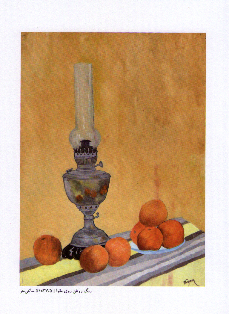 [تعليق: الأسد الحجري إشارة إلى الشواهد في مقابر الأكراد البختياريين في جبال زاغروس غرب إيران. يطلق اسم "باردشير" على الأسد الحجري الذي يحرس قبور المحاربين المجهولين، وربما كان النحّاتون فنانين من الرحَّل، نحتوها هناك ونقشوا خواصرها بالكلمات أو بمشاهد من المعارك. الكلمة الفارسية "كنجنامه" قد تعني النقش في الصخر والدليل إلى الكنز، وقد تعني ابتهالاً يُرفَع إلى الإله أهورامزدا في الديانة الزرادشتية].